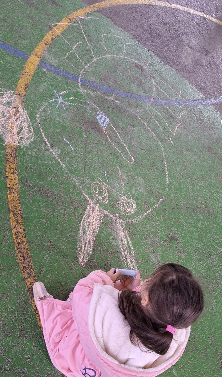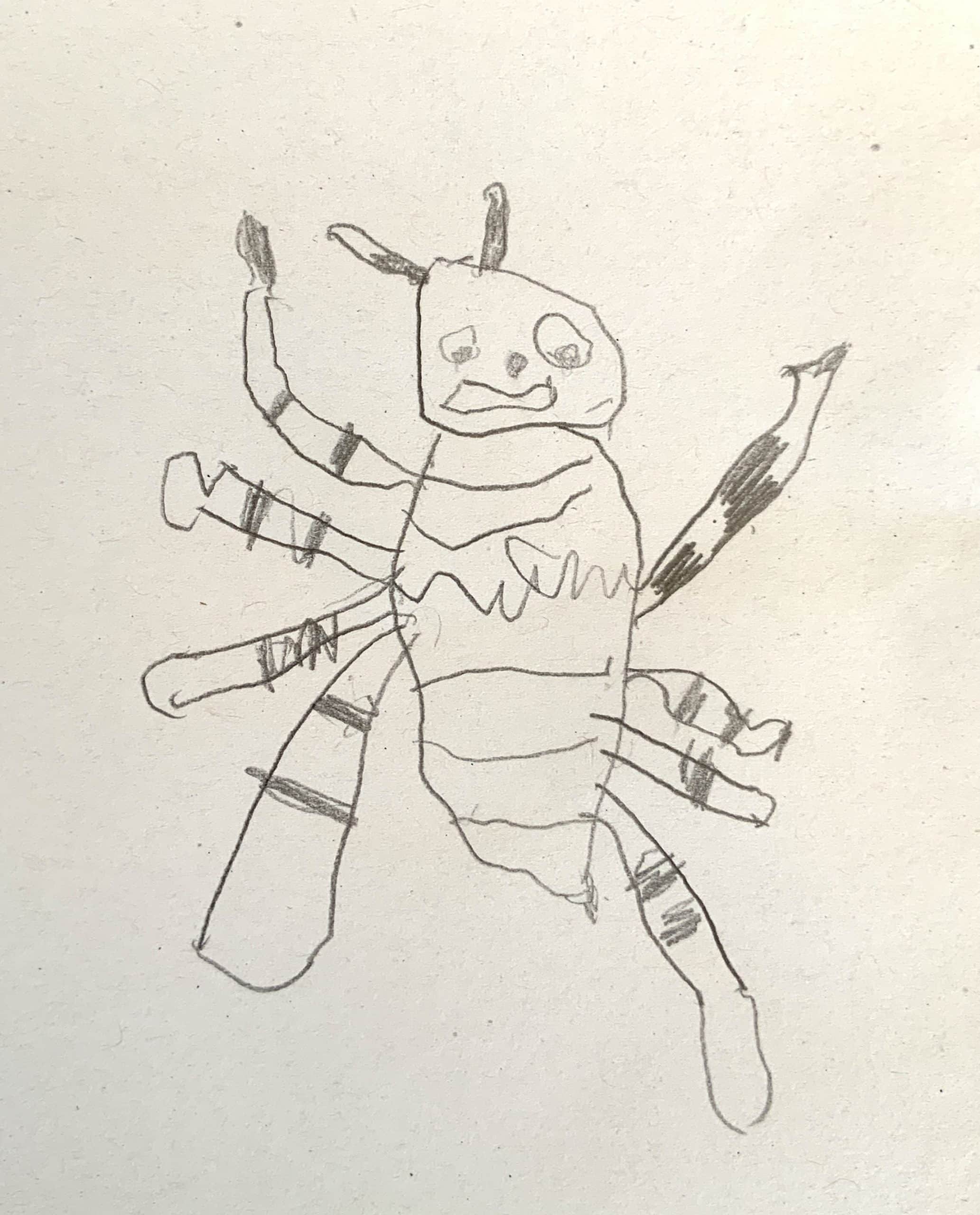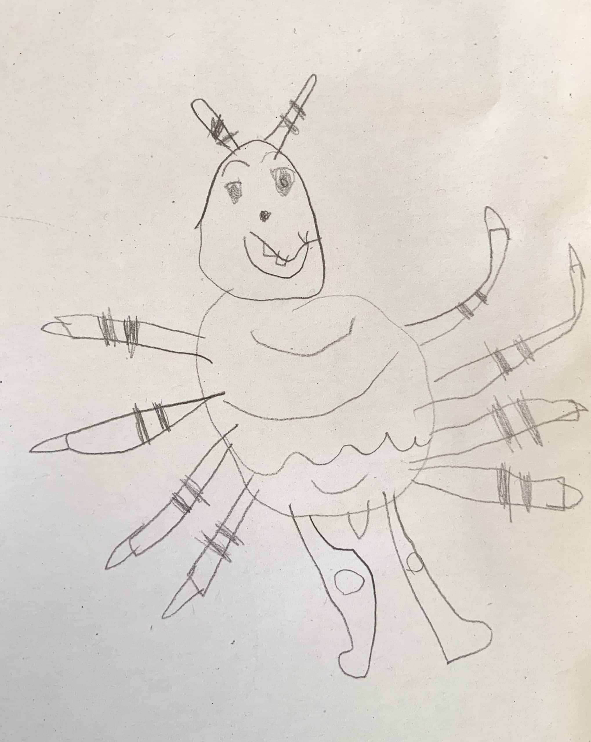 Novembre 2025 – Les beaux dessins des petits élèves de Manon et Céline : l’araignée Agri du livre Le monde des minuscules, entre automne et hiver